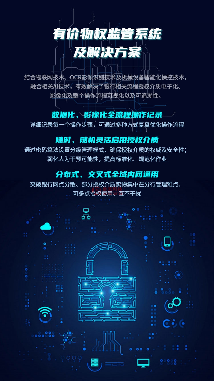 結合物聯網技術、OCR影像識別技術及機械設備智能化操控技術,融合相關AI技術,有效解決了銀行相關流程授權介質電子化、影像化及整個操作流程可視化以及可追溯性。